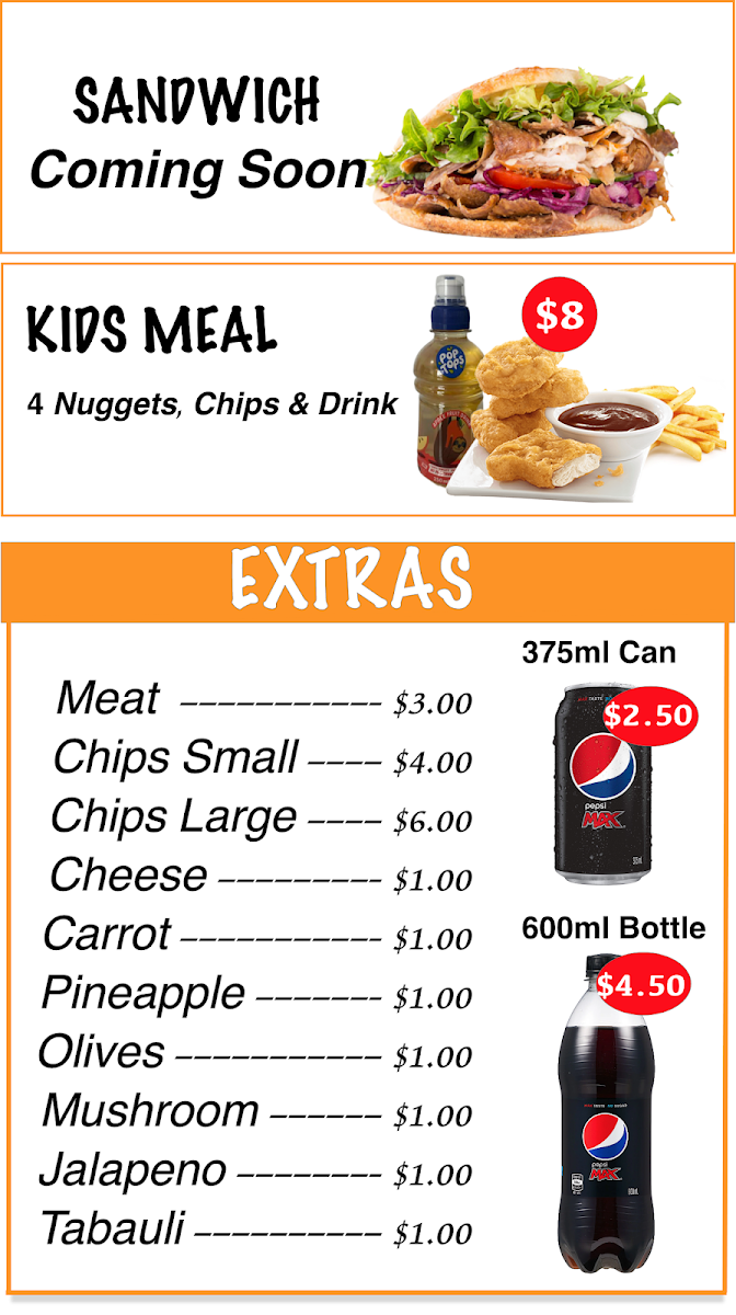 Bargara Kebab stands out as a local gem in Bargara, QLD, specializing in flavorsome kebabs and hearty meat packs. Their menu offers a wide selection, from the succulent large Doner and Chicken Kebabs to the fresh, vibrant Falafel Kebab that caters to vegetarian tastes. The Meat Only Packs, available in small and large sizes with options of Donor, Chicken, or a Mix, deliver generous portions at great value.